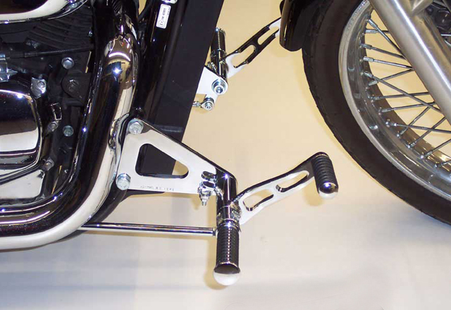 MB vorverl. Fußrasten / Sundance Look gefräst / long 18 cm / chrom / HONDA VT 750 Black Widow / RC48 / ABE